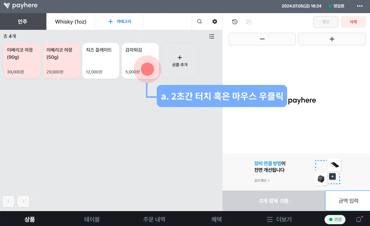 방법 1) 상품을 2초간 길게 터치 (PC 버전의 경우 마우스 우클릭)