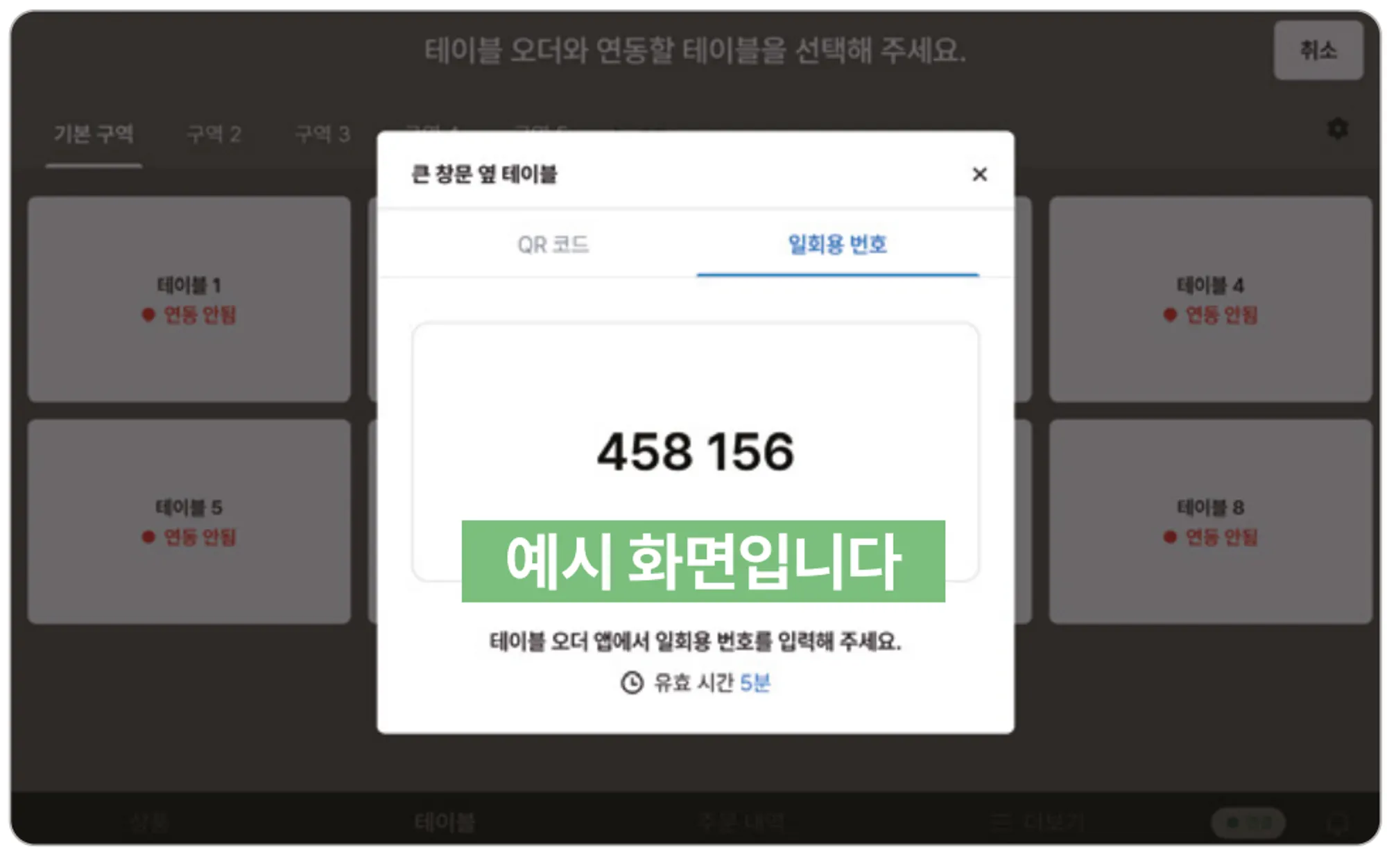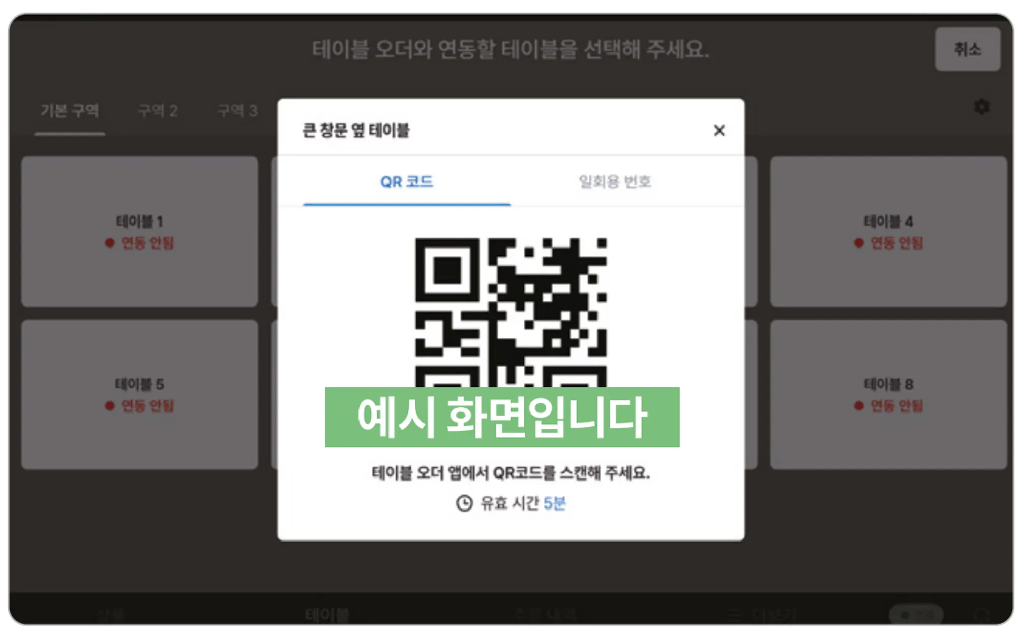 화면에 출력된 QR 코드를 테이블 오더 앱에서 스캔해 주세요.