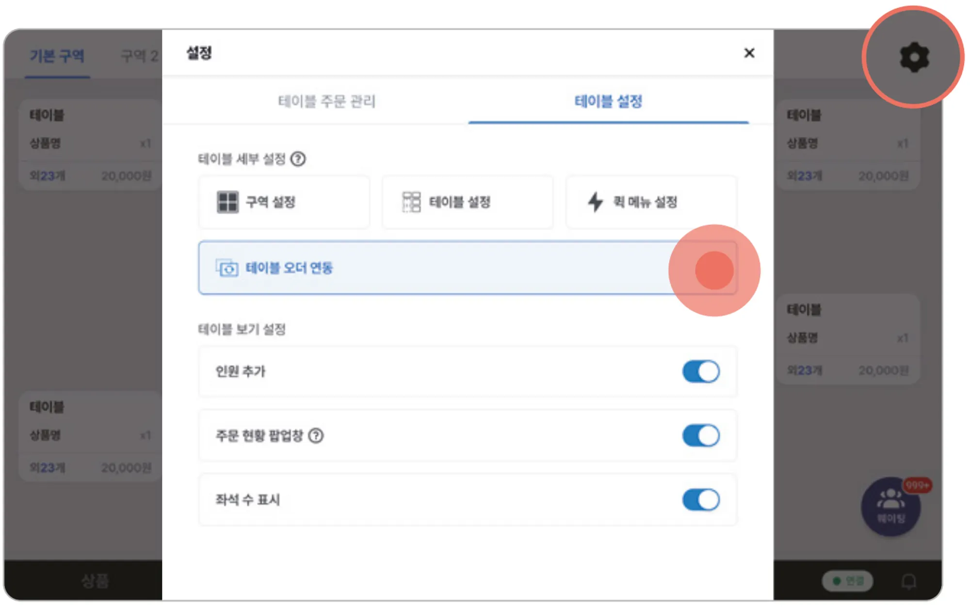 ] 버튼 → [테이블 오더 연동] 메뉴를 눌러주세요.