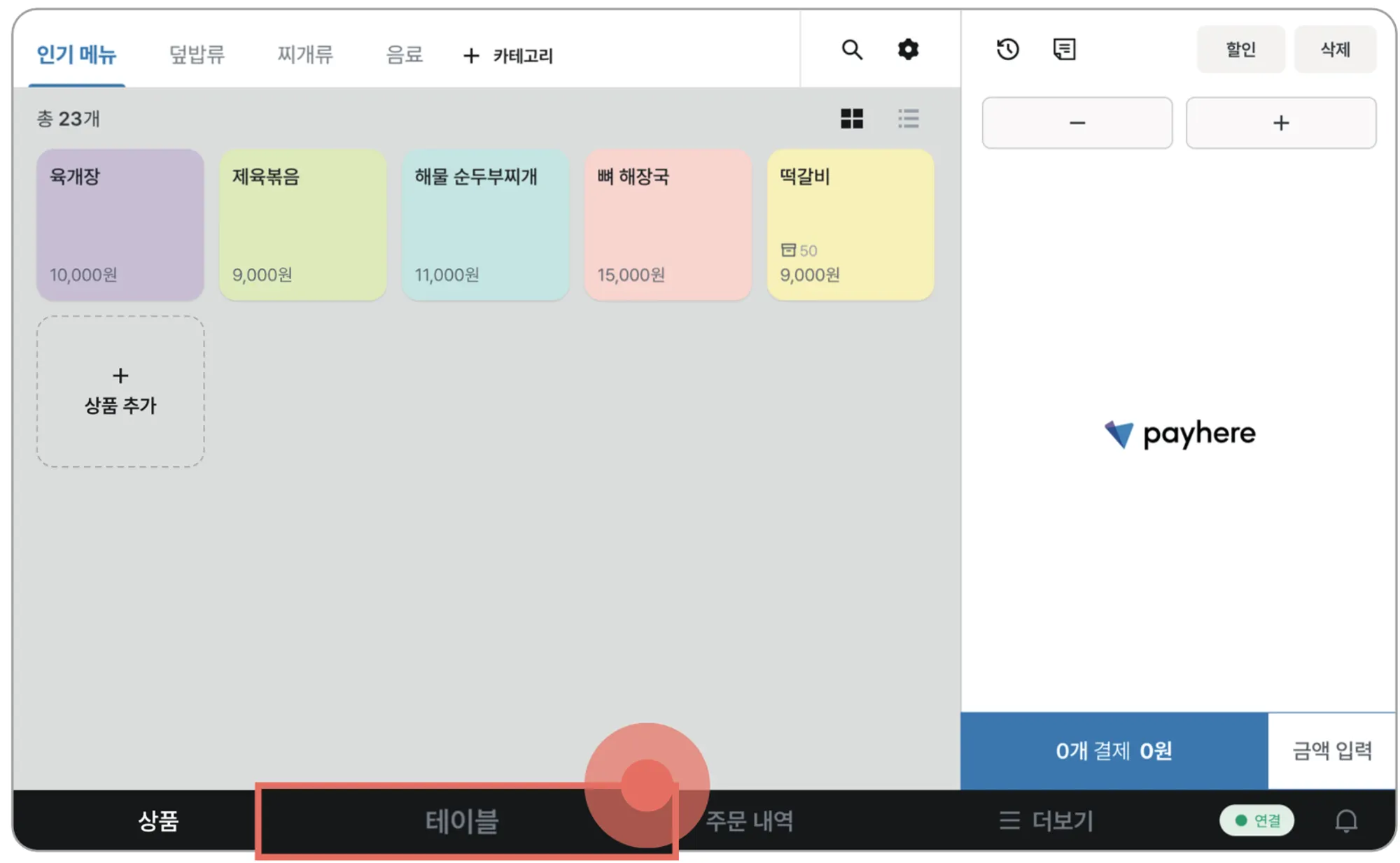 4. 홈 화면에서 [테이블 탭]을 눌러주세요.