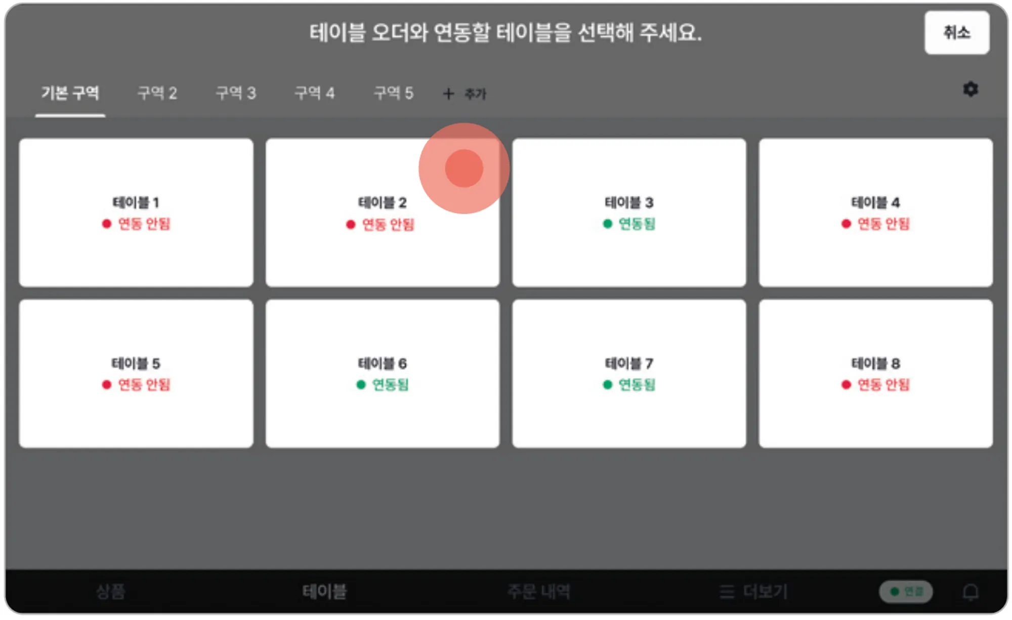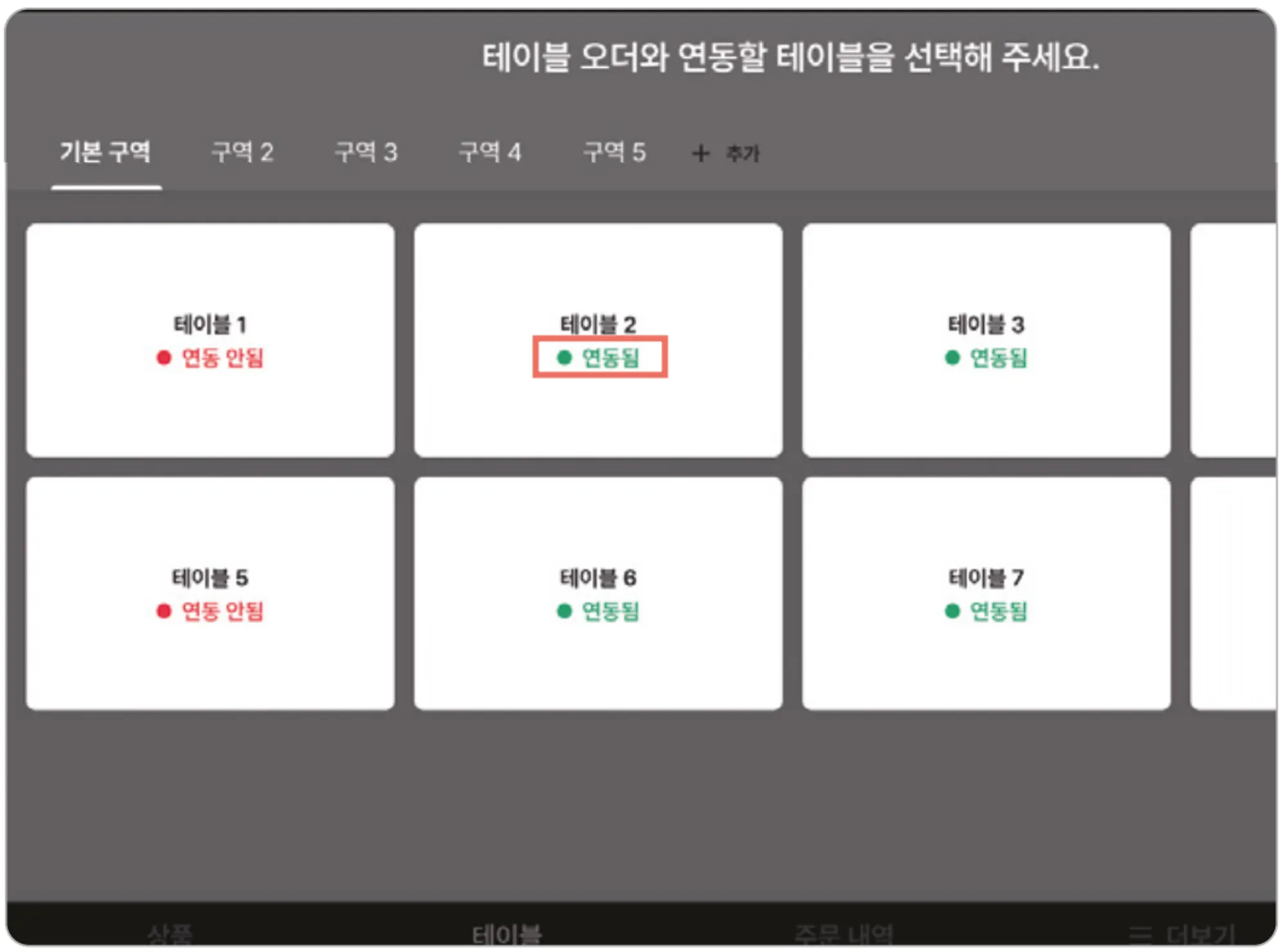 연동됨] 상태로 변경되고 테이블 오더가 활성화 됩니다.