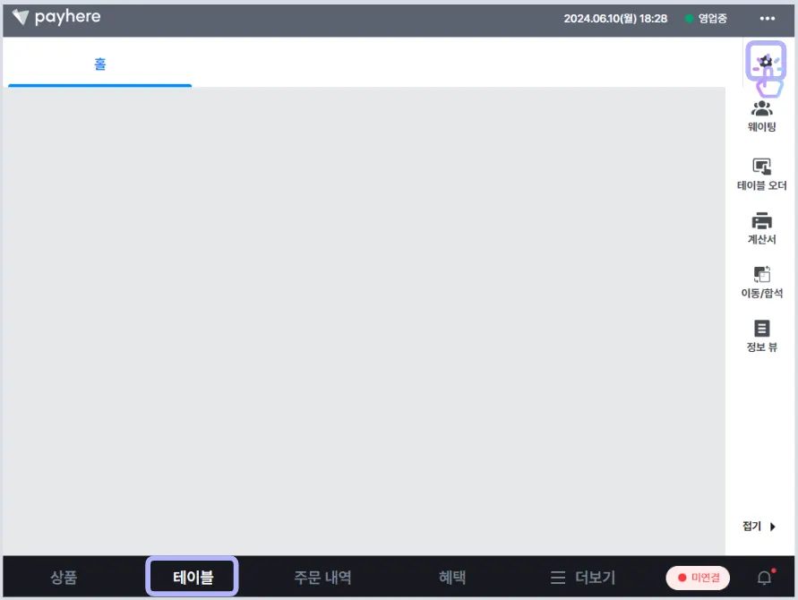 [테이블] 탭의 [퀵 메뉴]에서 [테이블 오더]를 클릭하면