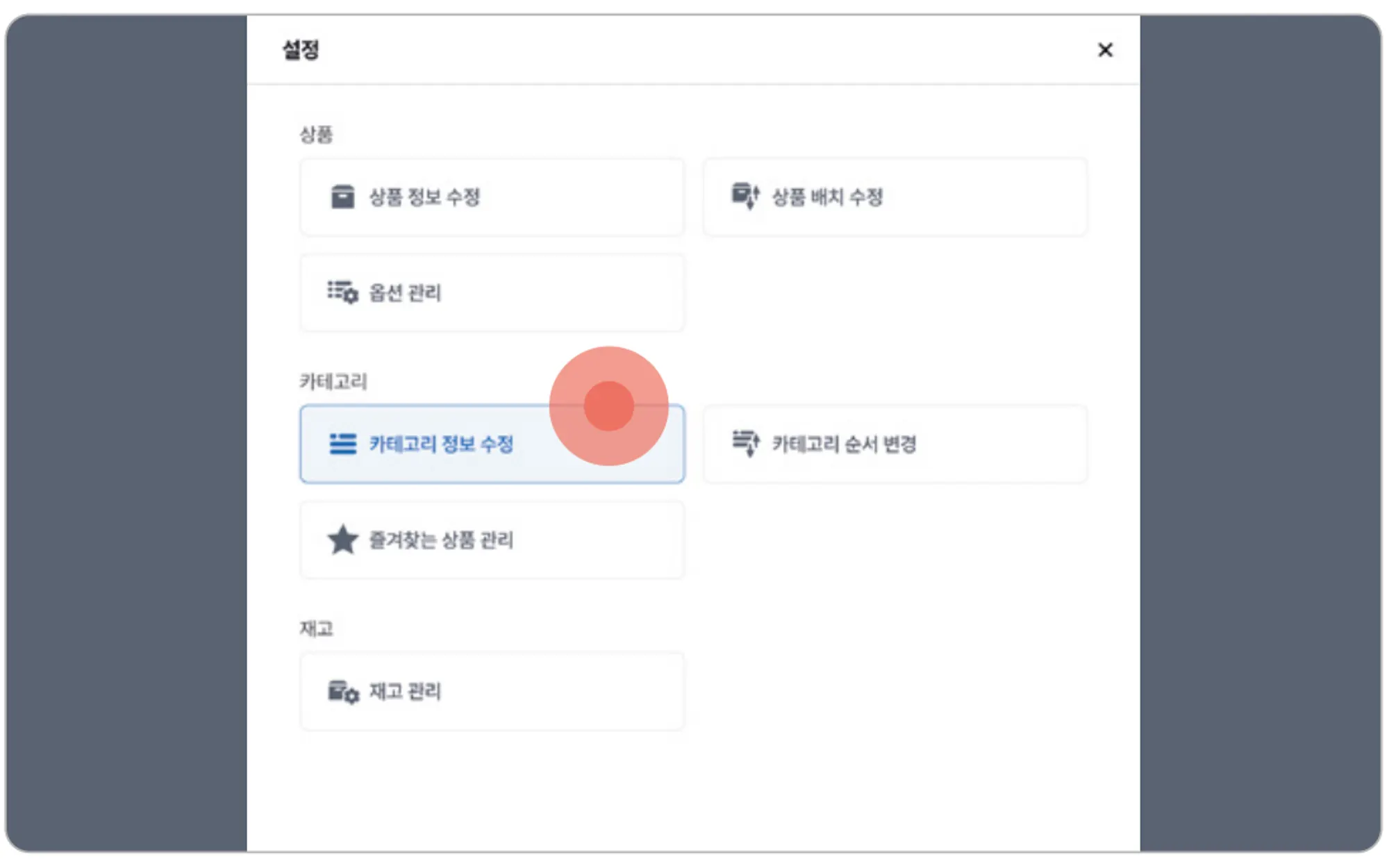 [카테고리 정보 수정] 버튼을 누르고 수정할 카테고리를 선택해 주세요.