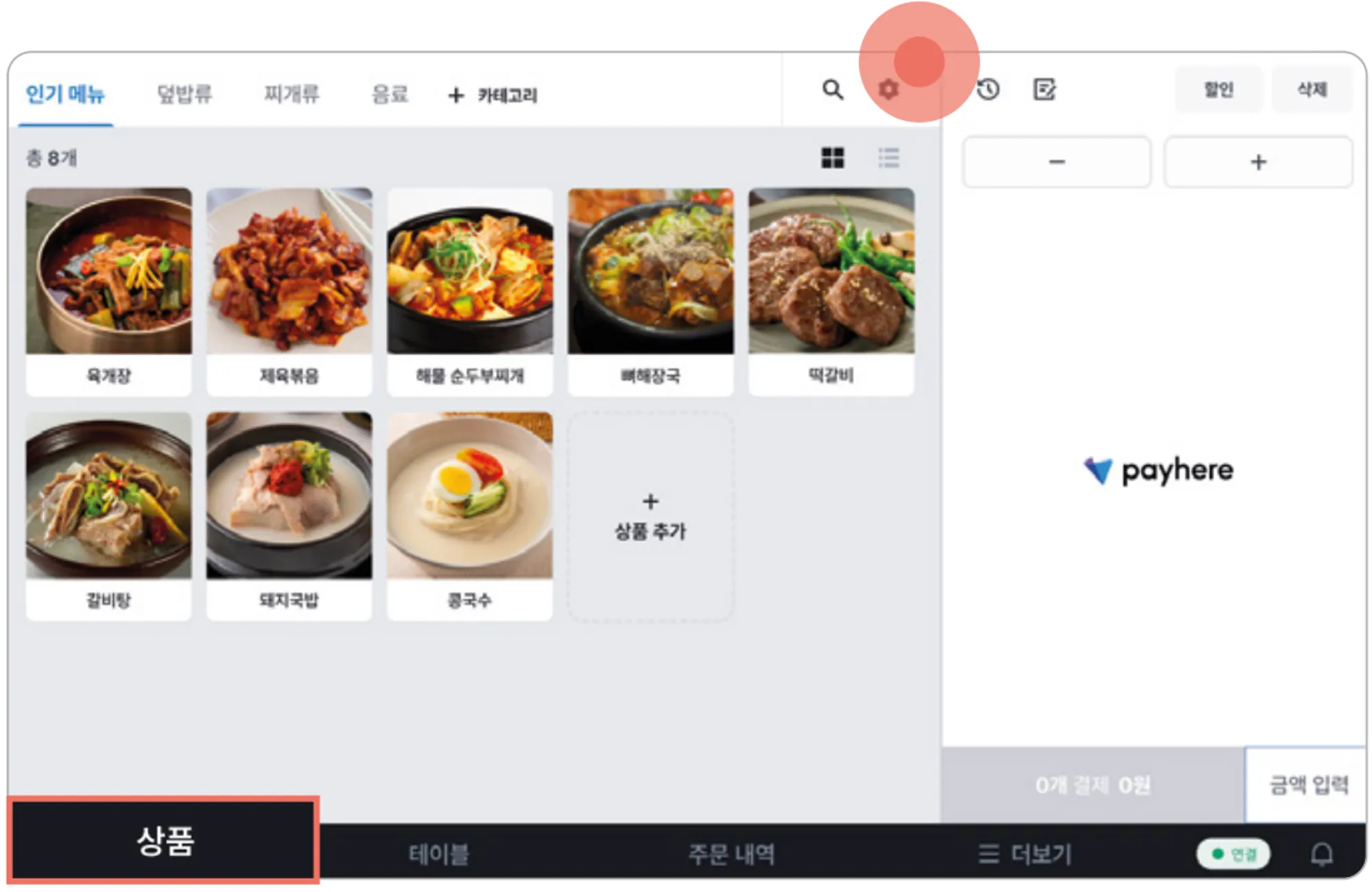 설정한 카테고리는 테이블 오더에는 나오지 않지만