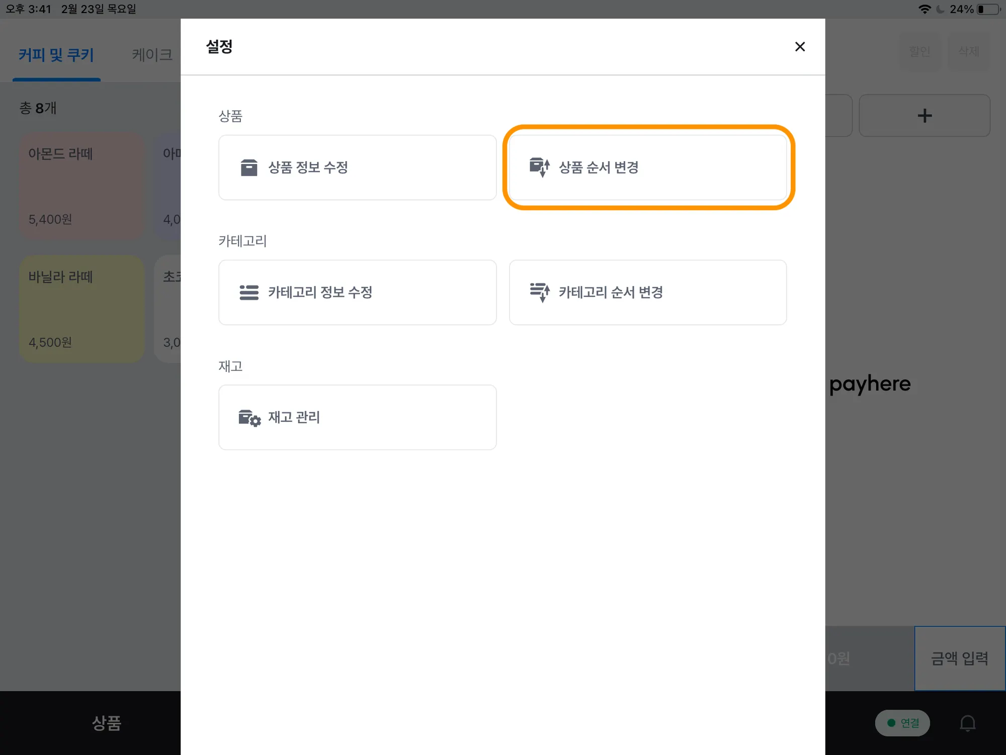 상품 순서 변경
