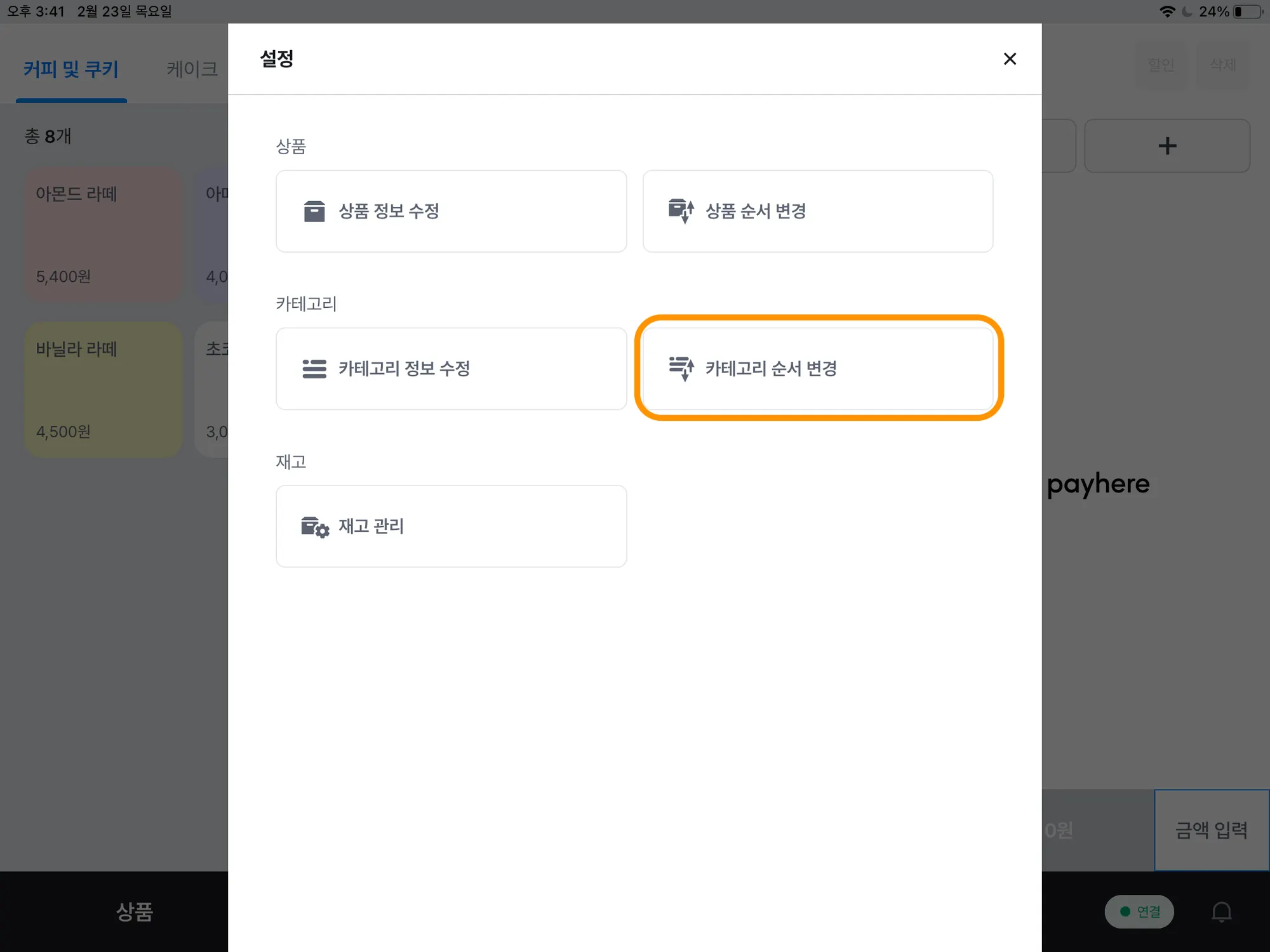 카테고리 순서 변경