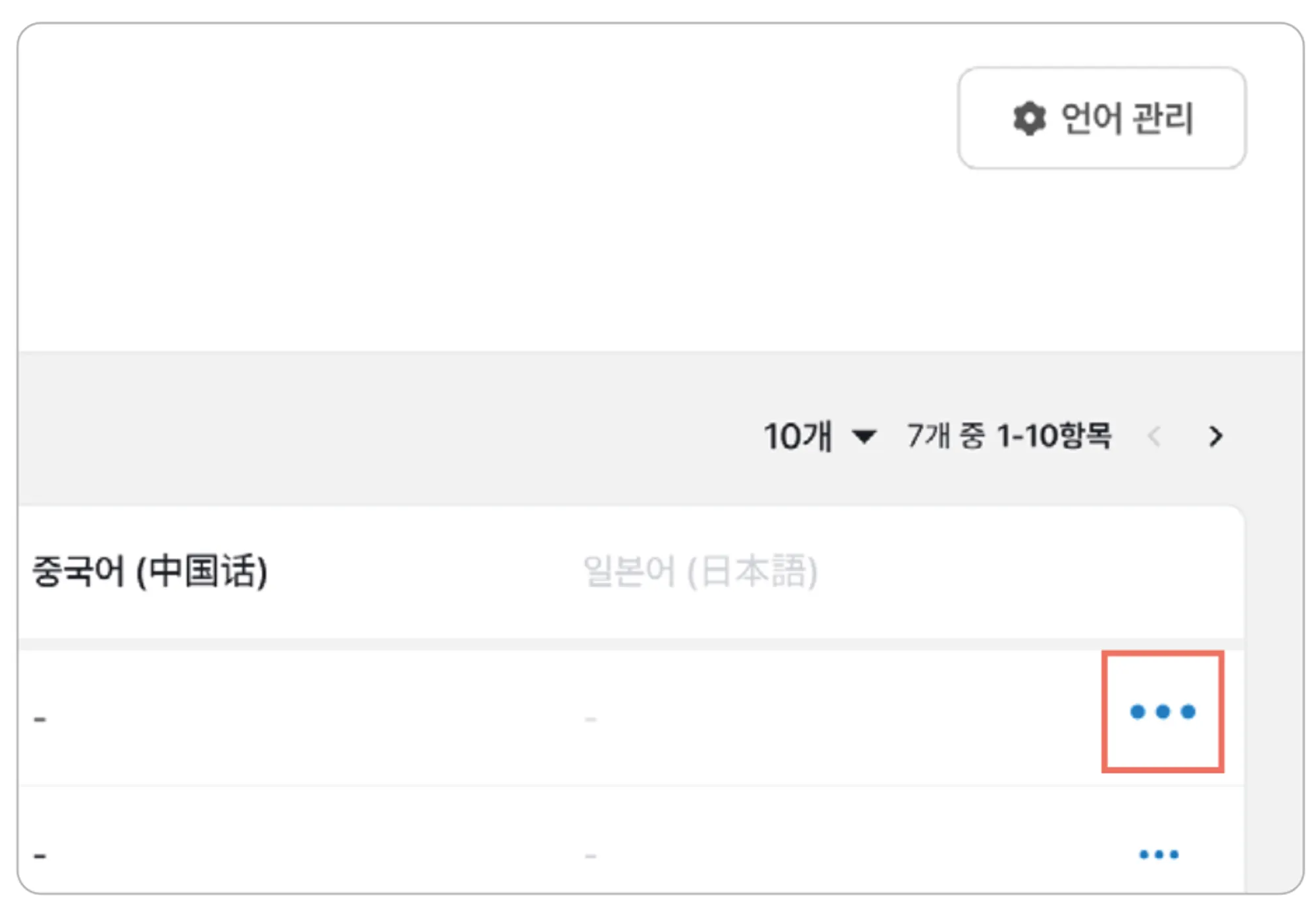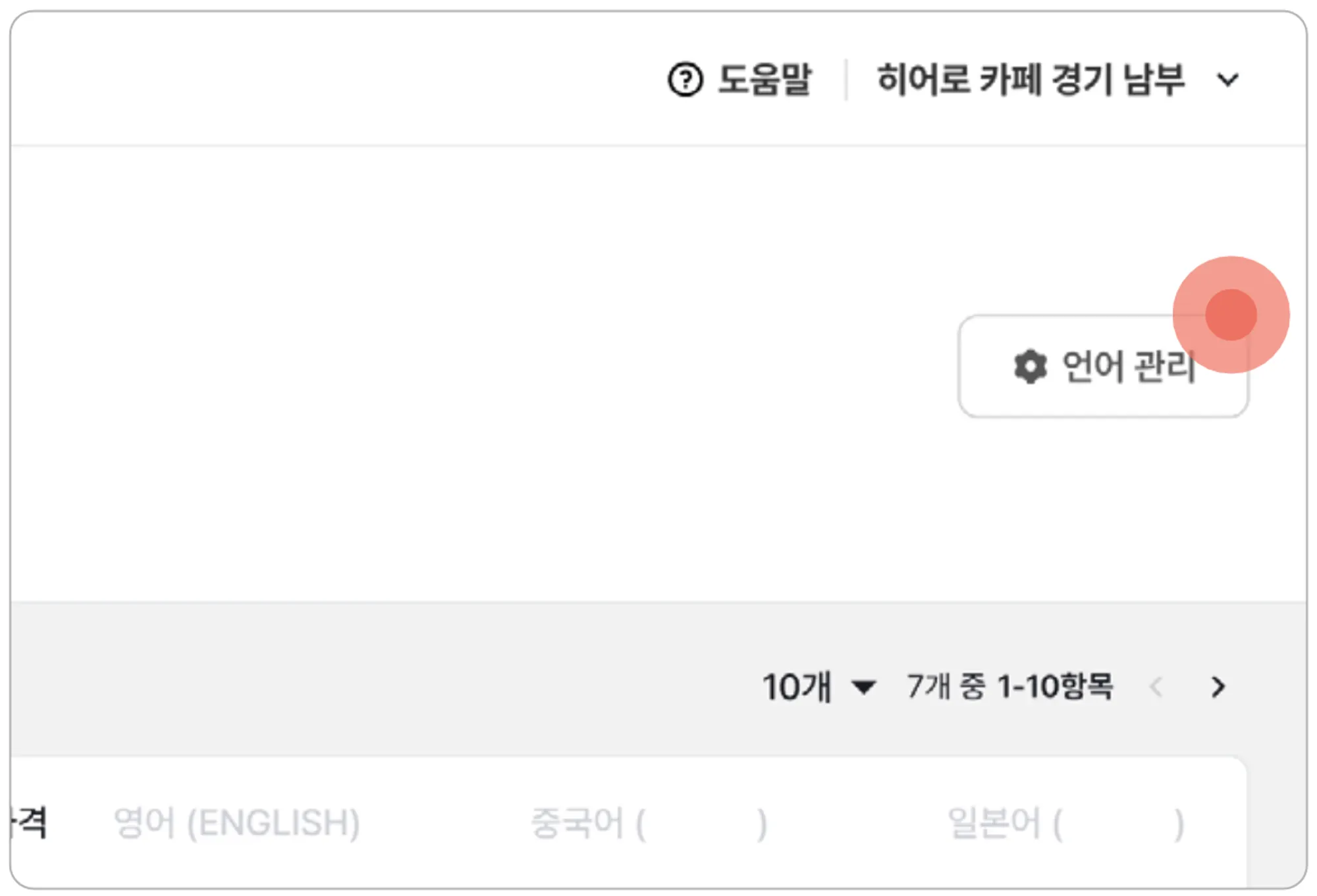 우측 상단의 [언어 관리]를 눌러주세요.