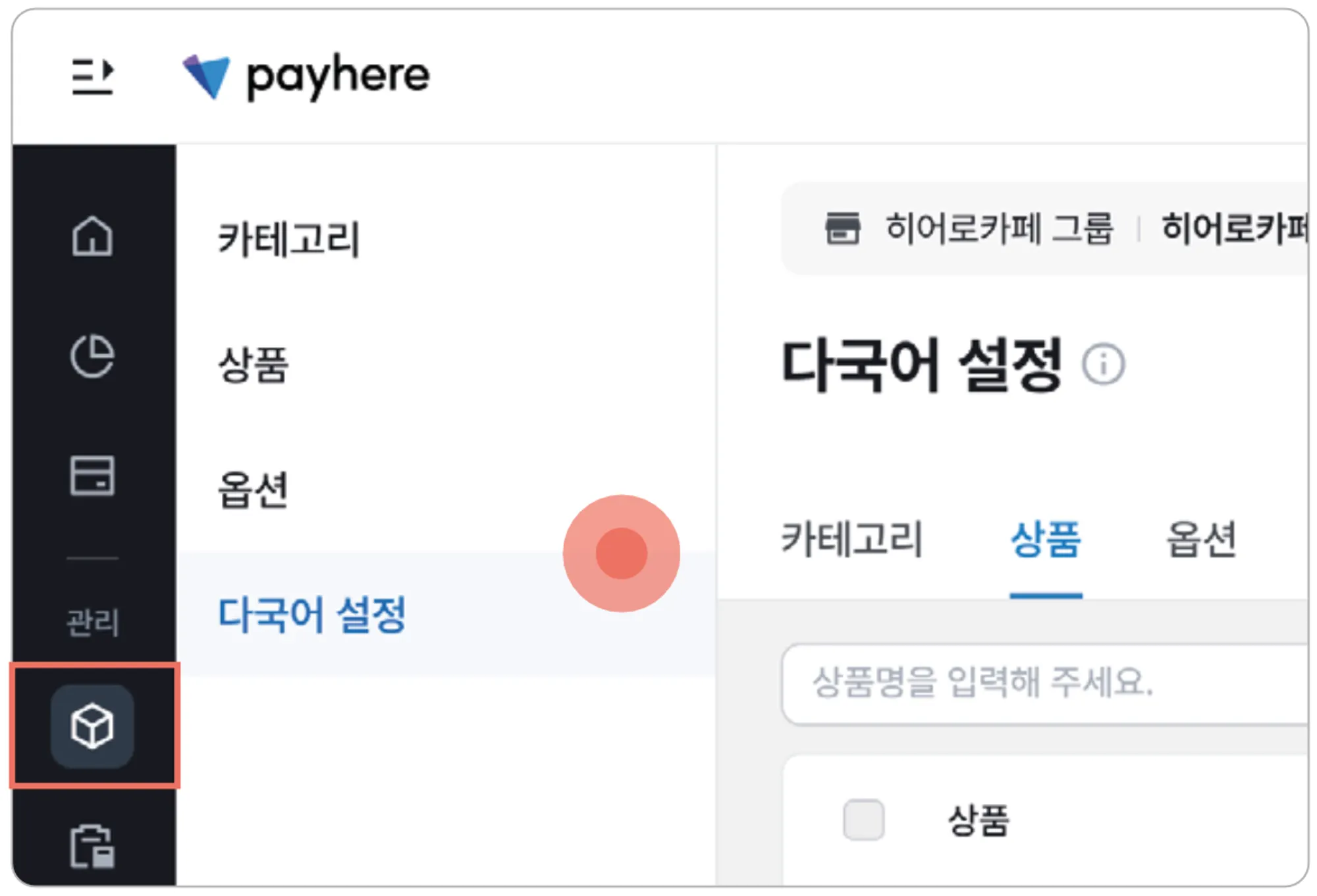 좌측의 [상품관리] 메뉴 → [다국어 설정]을 눌러주세요.