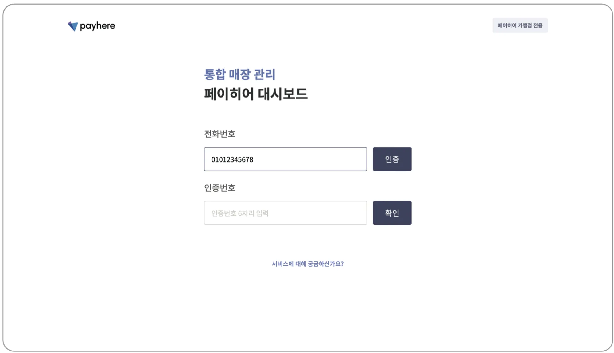 아래 버튼을 눌러 페이히어 대시보드에 접속한 후,